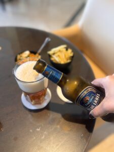 私はビール(4.75€、おつまみ付き)を注文して、まったりノマド作業をして過ごしたよ。