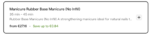 (「Infill Gel」のメニューが二つあるのは、最後にネイルしてから2-3週間か、3-4週間経ってるかの、違い)