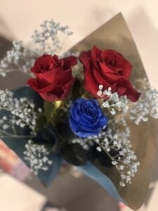 私の好きな赤色の薔薇と、彼の好きな青色の薔薇のブーケ。