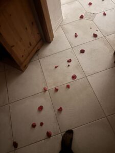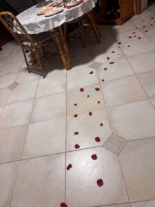 まず玄関に、薔薇の花びらが散らしてあって、
